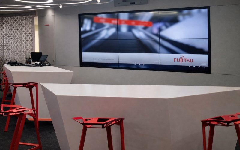 Pratyam Technologies' AV Certified Team meticulously analyzed Fujitsu's requirements and implemented a seamlessly integrated solution across six AV zones. Each zone was designed with specific technology to meet its unique function – from digital signage and interactive displays to video walls, video conferencing, and background music.