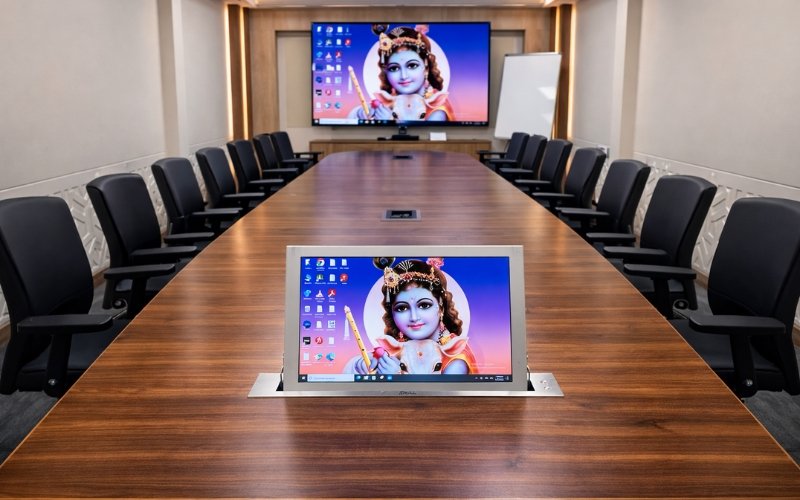 The result is a boardroom where executives experience seamless hybrid meetings, one‑touch conference startup, and crystal‑clear voice capture – with technology that remains elegantly hidden.