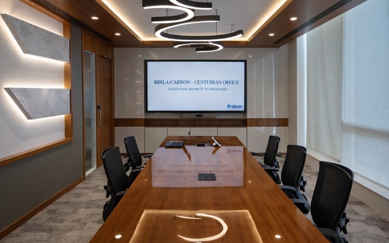 Pratyam Technologies partnered with Birla Carbon Mumbai Head Office to integrate cutting‑edge audio‑visual technologies in the Main Conference Hall. The solution delivers an immersive experience through Samsung Flip interactive display, Cisco Webex video conferencing, high‑quality Audac audio, and Crestron control automation – ensuring seamless presentations and video conferencing for corporate users.
